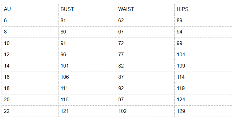 Please note that measurements may vary between garments due to fabric, fit and style. Check your body measurements against this guide to ensure the right fit.